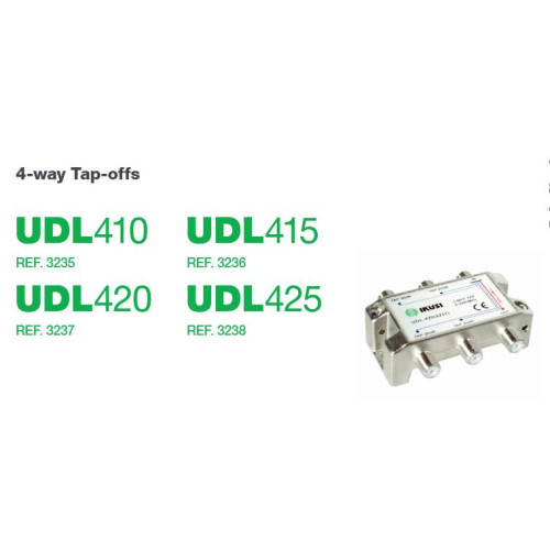 Pasivni distribucijski odcepnik za SMTV in CATV omrežja. Frekvenčni razpon: 5-2300 MHz. DC napajanje prehod (+24 VDC, 0.5 A) na glavni liniji. Štiri vejni ( 4 izhodi).